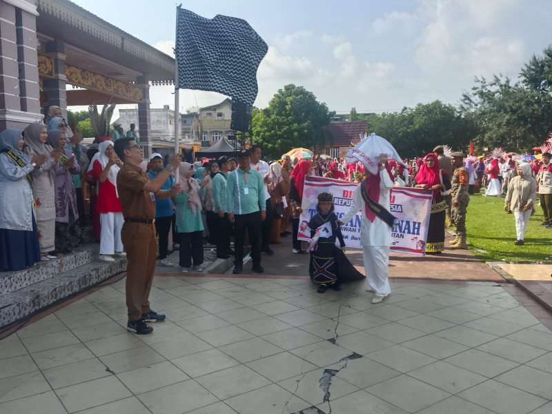 TELUK KUANTAN (ANews) - Bupati Kuansing Suhardiman Amby diwakili Penjabat (Pj) Sekretaris Daerah (Sekda) Kuansing Fahdiansyah melepas kegiatan lomba pawai budaya karnaval Kecamatan Kuantan Tengah bertempat di Lapangan Limuno, Senin (12/8/2024).