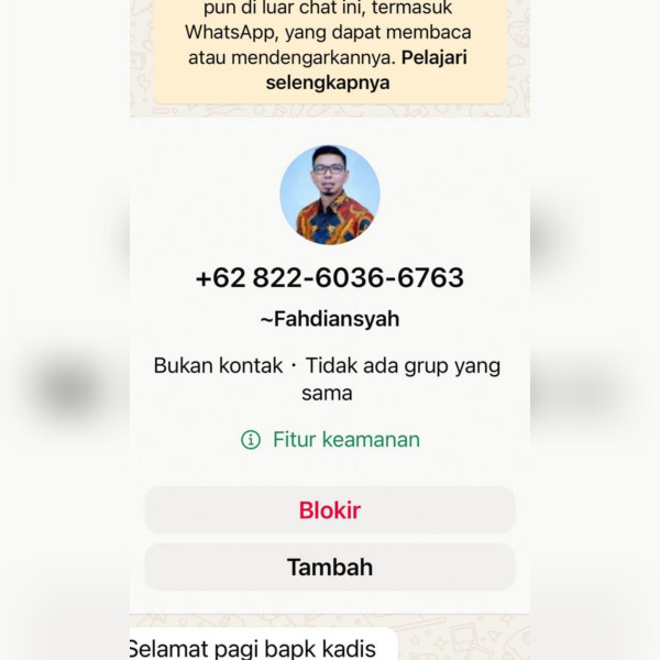 "Tadi juga sudah disampaikan di grup Kepala OPD bahwa itu bukan nomor WA pak Pj Sekda," tegasnya. (RBI/ANews)