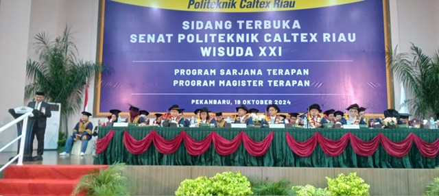 PEKANBARU (ANews) - Politeknik Caltex Riau (PCR) menggelar wisuda di Gedung Serbaguna Kampus PCR di Pekanbaru, Sabtu (19/10/2024).