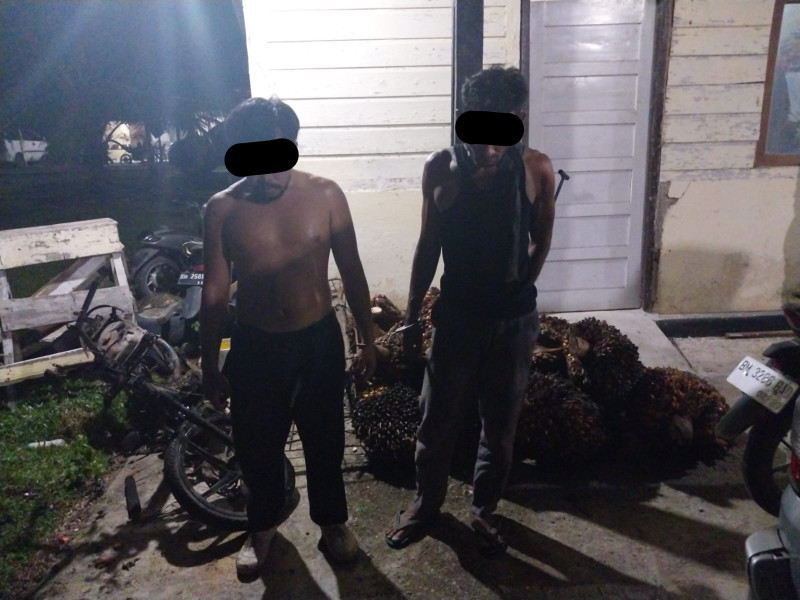 Kedua terduga pelaku berinisial GS (39) dan IN (23). Keduanya tak bisa mengelak setelah dikepung oleh warga dan menemukan buah sawit yang siap dipanen.
