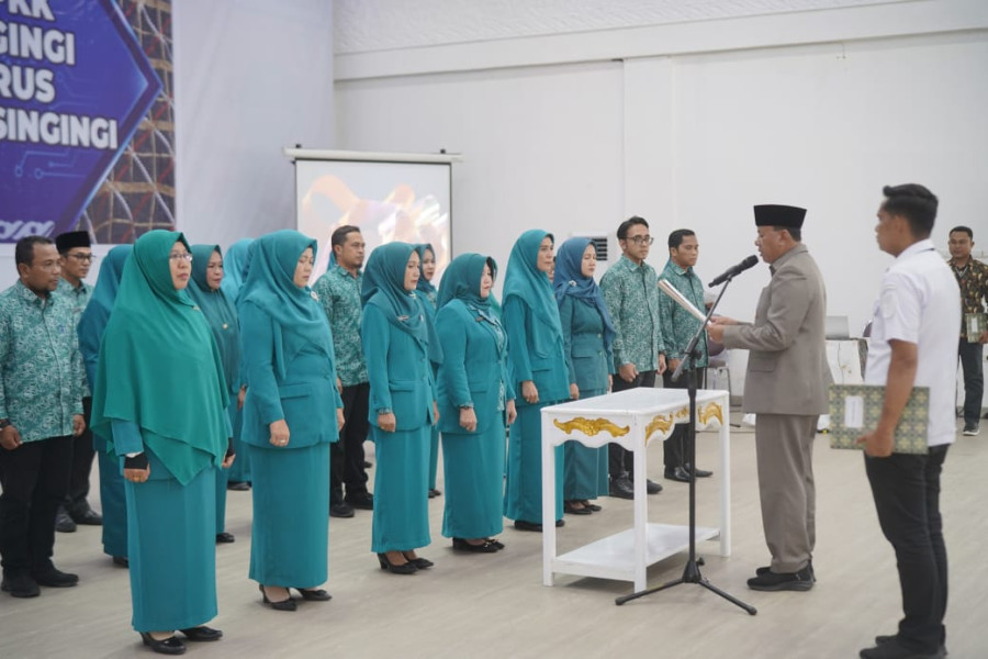 Acara pengukuhan dipimpin langsung Bupati Kuansing Suhardiman Amby, dihadiri Forkopimda, pejabat dilingkungan Pemkab Kuansing, bertempat di pendopo rumah dinas Bupati, Senin (3/3/2025).