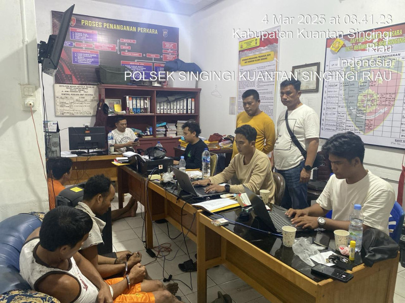 TELUK KUANTAN (ANews) - Sebanyak 6 terduga pelaku pencurian brondol sawit ditangkap polisi di Desa Pulau Padang, Kecamatan Singingi, Senin (2/3/2025) malam.