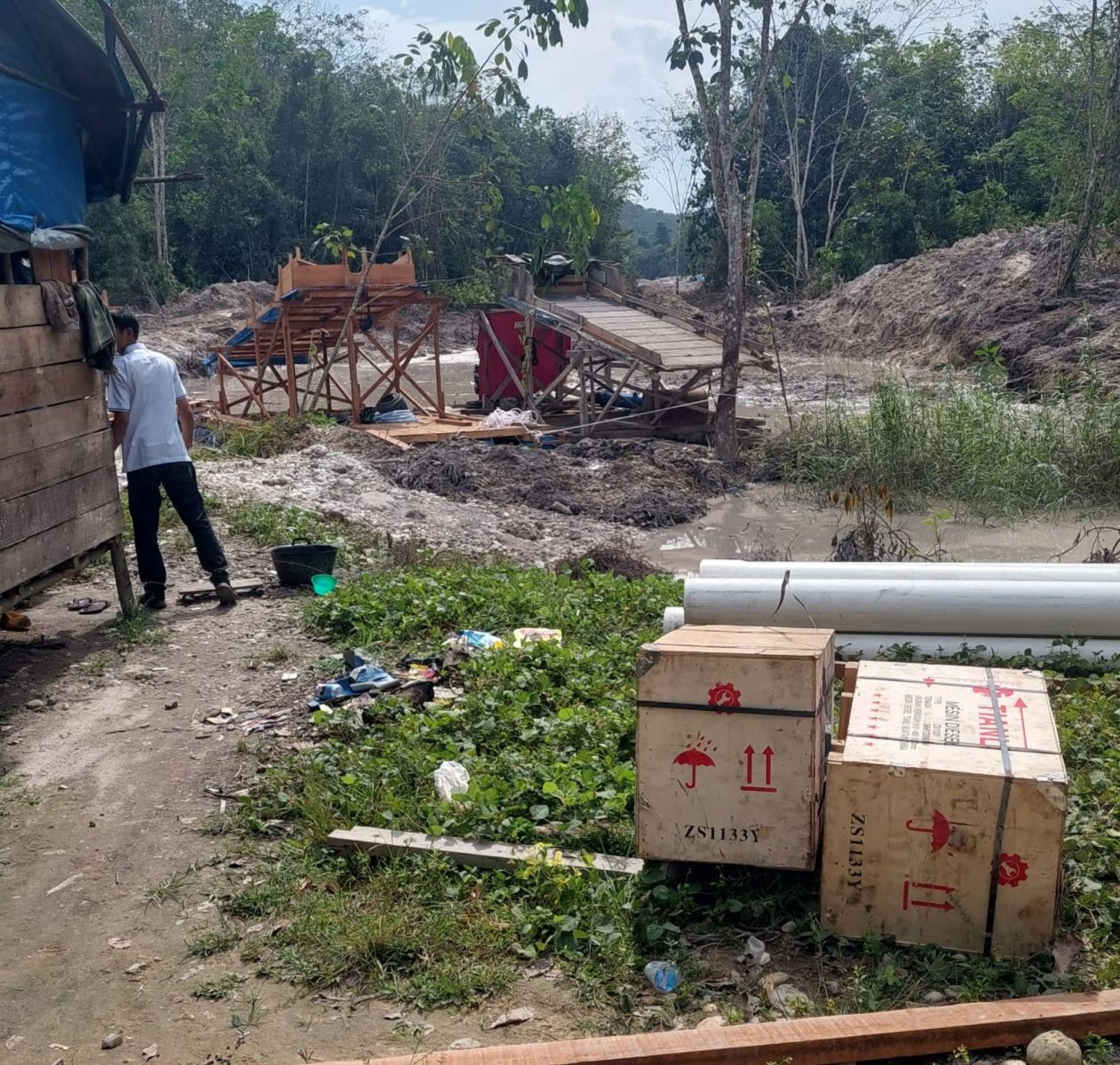 Pondok dan rakit PETI ditemukan Disbunak Kuansing di lahan Pemda Kuansing. (F:Ist-ANews)