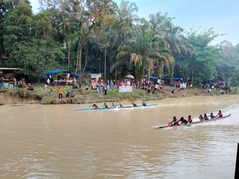 Pacu jalur mini di Tepian Duo Muaro dihadiri Ketua DPRD Kuansing Juprizal, Plt Camat Pucuk Rantau, para Kades, BPD, tokoh masyarakat serta undangan lainnya, Ahad (1/6/2025).
