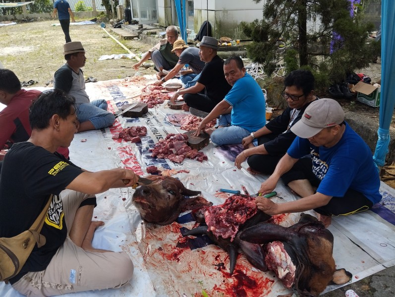 ''Kami berterima kasih kepada kawan-kawan yang telah bergotong-royong menyelenggarakan penyembelihan ini, sehingga berjalan cepat dan lancar. Terima kasih juga kepada ibu-ibu IKWI yang telah membantu memasak,'' ujar Raja Isyam Azwar. (***/Rls)