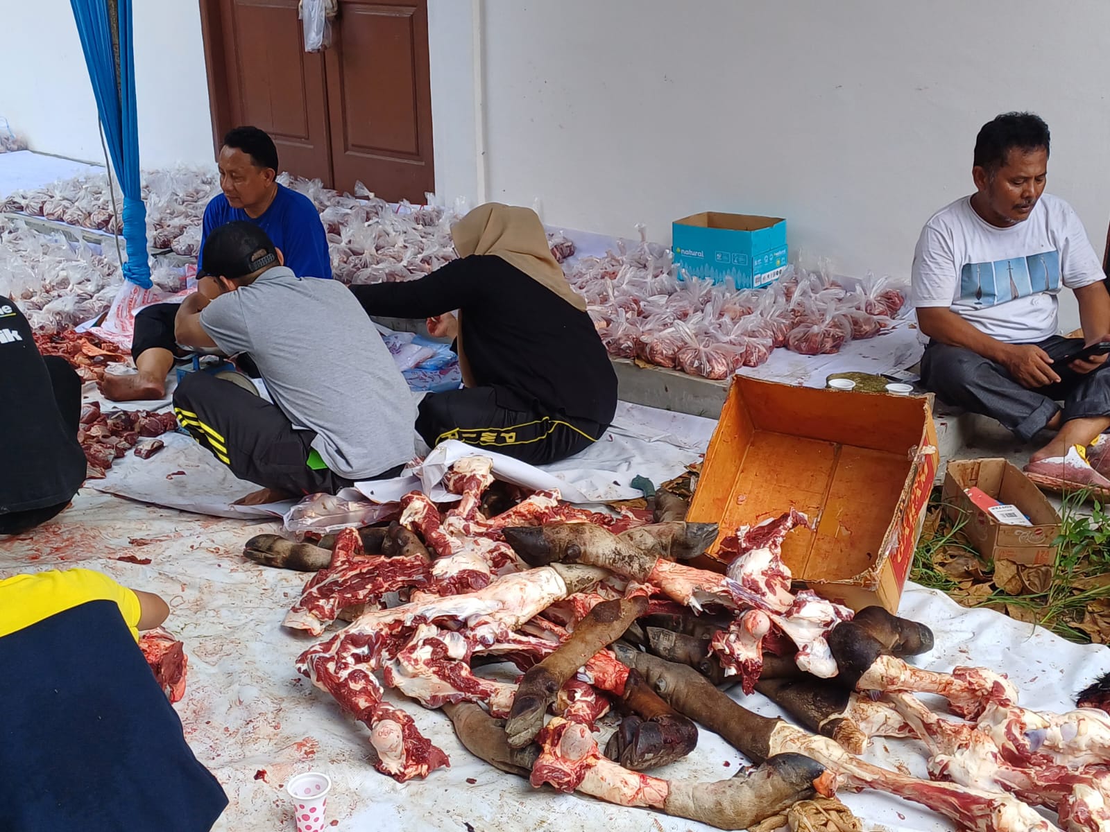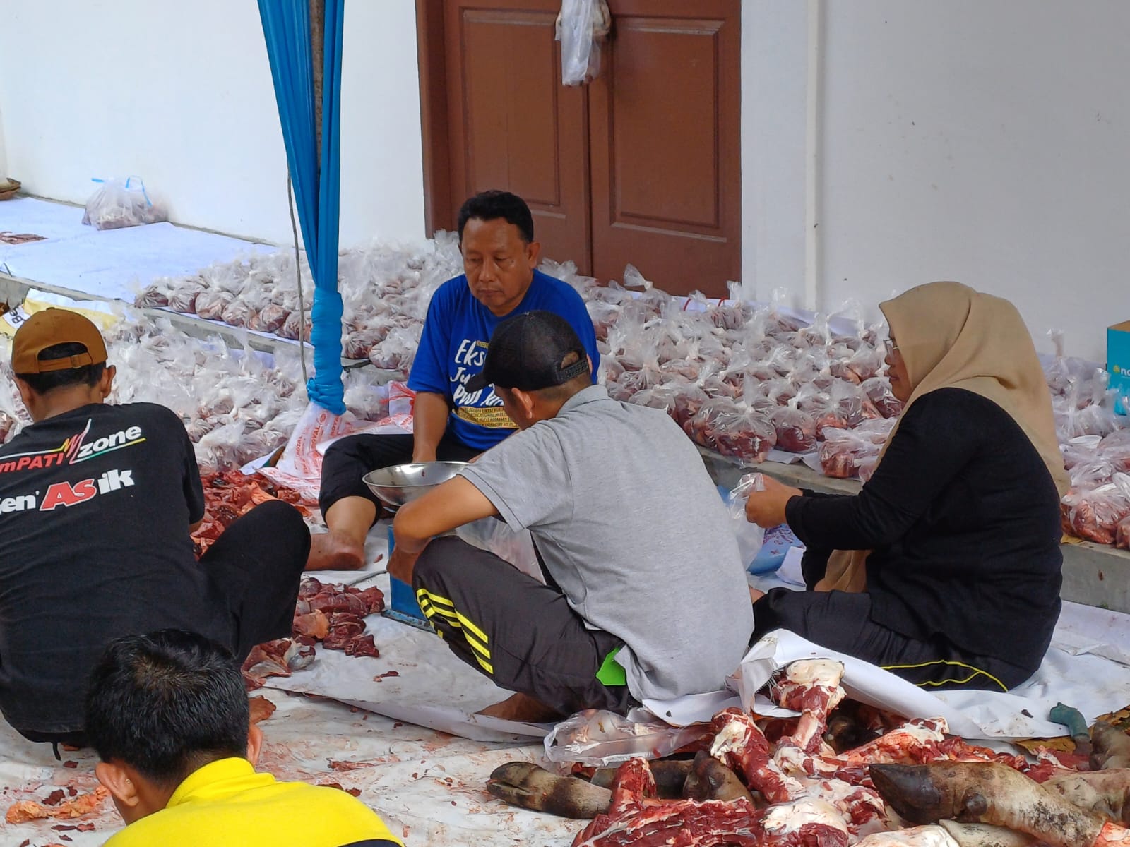 Menjelang Zuhur, seluruh daging kurban sudah selesai dimasukkan ke kantong plastik. Ratusan kantong daging kurban dibagikan untuk anggota PWI Riau dan juga masyarakat.