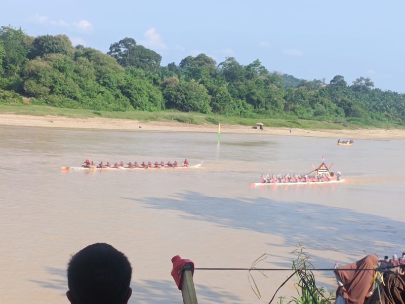 TELUK KUANTAN (ANews) - Jalur Mini Perwira Muda, Desa Toar, Kecamatan Gunung Toar keluar sebagai juara satu pada Festival Pacu Jalur Mini di Tepian Ronge Biru, Desa Pulau Aro, Ahad (27/7/2025).