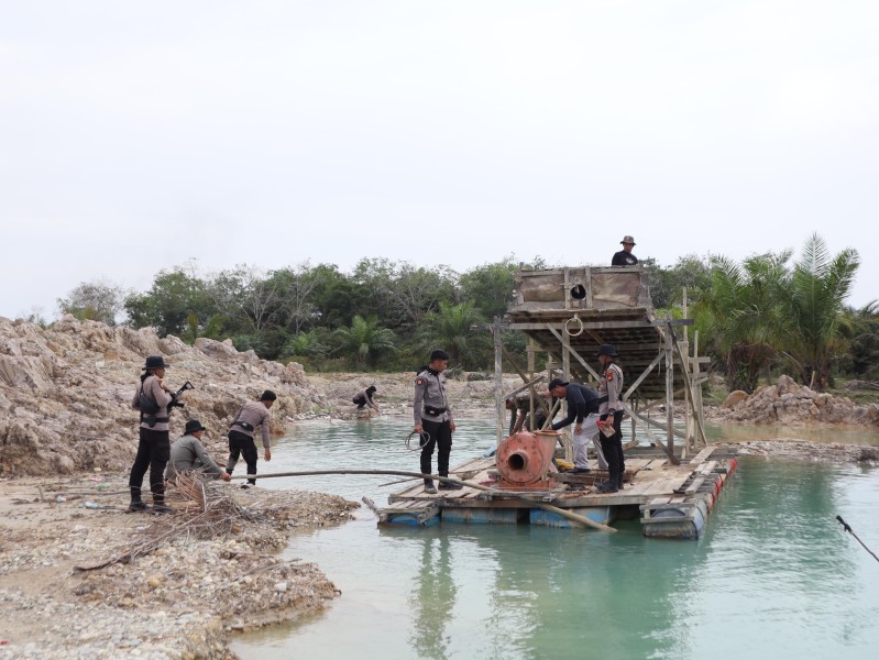 Tim ini lanjut Kabag Ops, menyisir dua lokasi di Kecamatan Kuantan Hilir Seberang, yakni Desa Kasang Limau Sundai dan Desa Teratak Jering, dengan total temuan sebanyak 25 unit rakit PETI yang seluruhnya langsung dimusnahkan di lokasi.