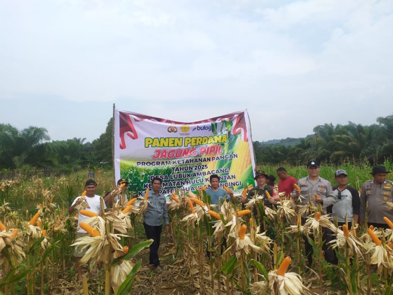 TELUKKUANTAN (ANews) - Setelah tiga bulan dari waktu penanaman, ketahanan pangan jenis jagung pipil Desa Lubuk Ambacang, Kecamatan Hulu Kuantan akhirnya dilakukan pemanenan perdana, Kamis (28/8/2025).