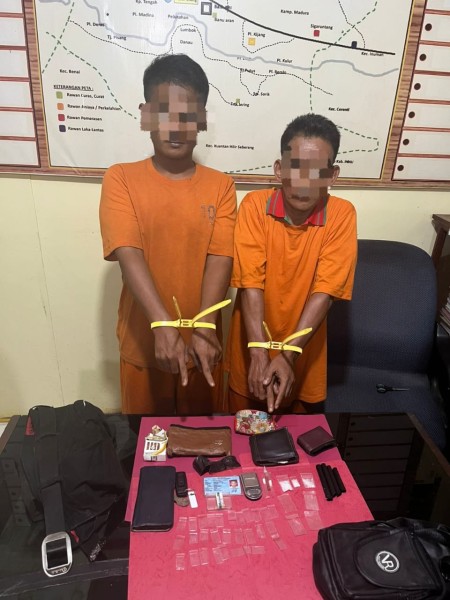 Penangkapan kedua tersangka dipimpin langsung Kanit Kanit Reskrim Polsek Kuantan Hilir, Ipda Debi Setyawan.